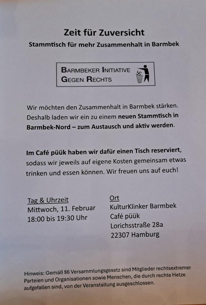 Zeit für Zuversicht – Stammtisch für mehr Zusammenhalt in Barmbek