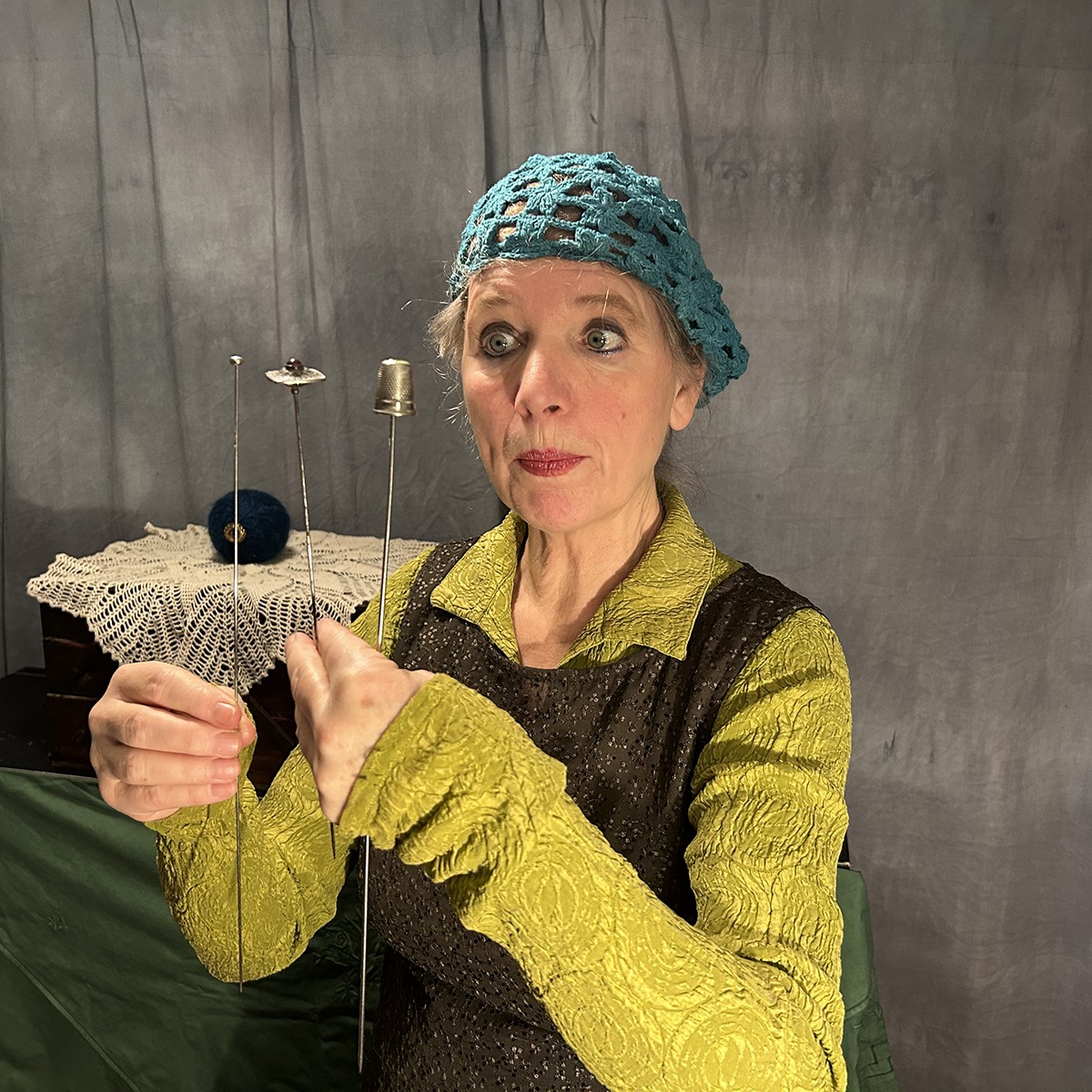 Wer kennt nicht das Märchen vom Dornröschen, das sich an einer Spindel sticht und in einen 100-jährigen Schlaf fällt und mit ihr das ganze Königreich? Omas Nähkasten wird zum Schloss und die Fächer des Kästchens zur Bühne – Garnrollen und Wollknäuel zu Darstellern und Scheren zu Dornen. Mit Nadel und Faden wird erzählt, was Angst und Wut anrichten können und – während die Dornenhecke wächst – über die Frage nachgedacht: Was wäre, wenn der König großherzig und weitsichtig alle weisen Frauen eingeladen hätte?